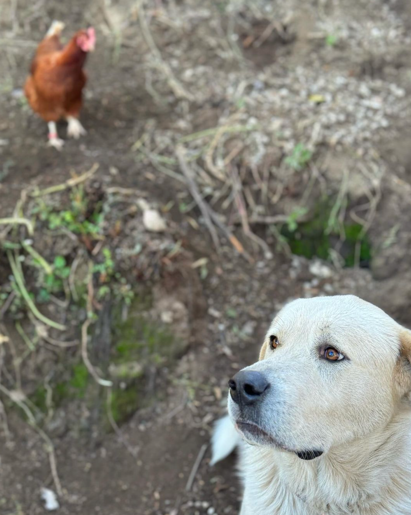 These fresh organic eggs were laid within the past week by our flock. We raise a variety of breeds from birth each of which lays a different color egg: from white to blue and beige to chocolate brown. They live in a coop overlooking Half Moon Bay, and are free to scratch and peck their way around the forest where they are looked after by our guardian dog Messy.